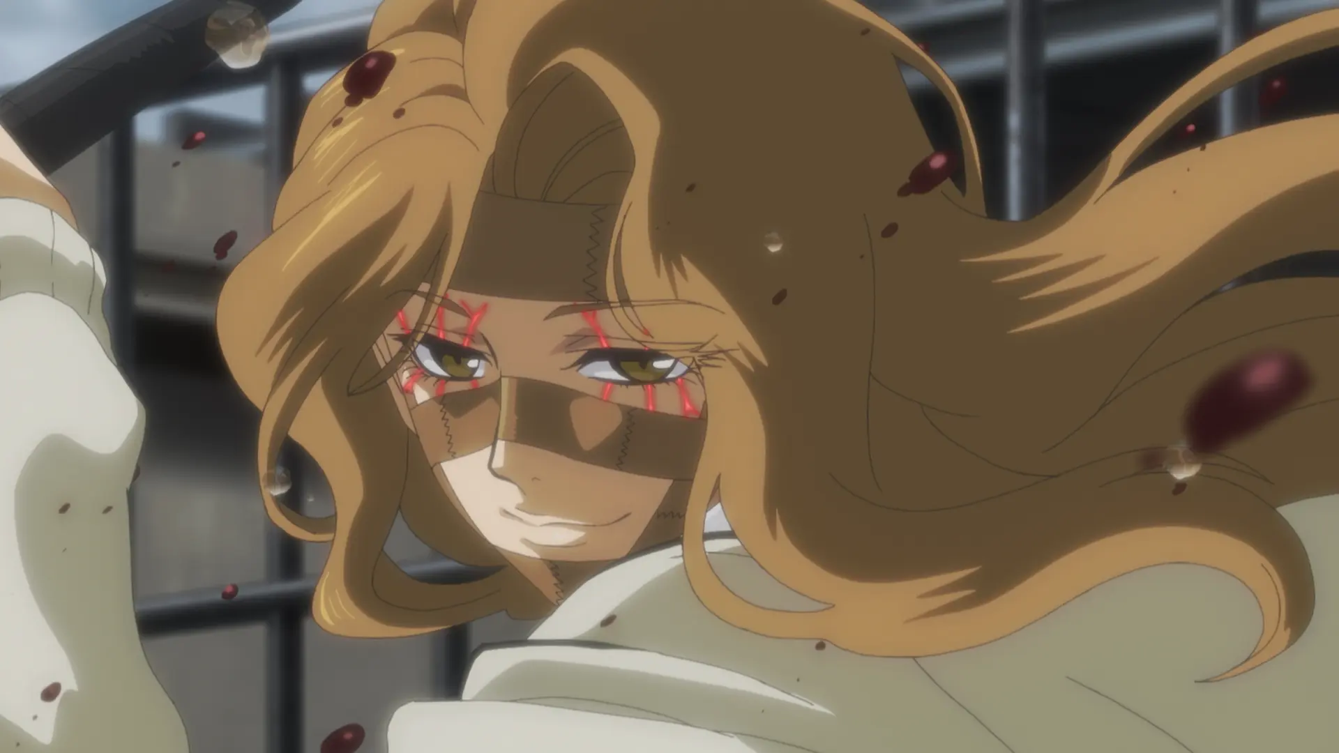 殺島の"狂弾舞踏会"に翻弄され、頭蓋骨を突かれた忍者。